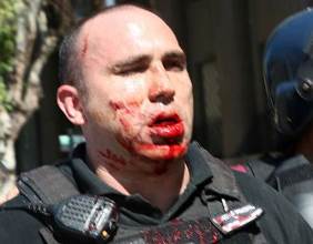 Los violentos formaron barricadas, parapetándose detrás de placas de madera, mientras seguían arrojando todos tipo de objetos a la Policía que, con el correr de los minutos, logró desplazarlos hasta más de la mitad de la plaza, en dirección a avenida de Mayo.