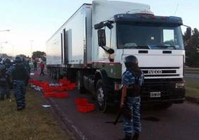 Un grupo intentó entrar a un hipermercado y atacaron a un camión con mercadería y a otro con animales de hacienda