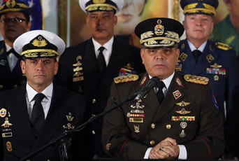 "Alerto al pueblo de Venezuela que se está llevando un golpe de Estado contra la institucionalidad, contra la democracia, contra nuestra Constitución, contra el presidente Nicolás Maduro, presidente legítimo", aseguró el ministro, flanqueado por toda la cúpula militar.