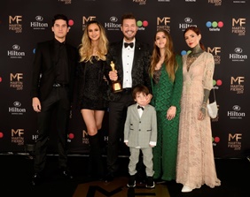 Con lágrimas en los ojos, la voz quebrada y todos los presentes en el salón aplaudiéndolos de pie, el conductor agradeció la distinción, y se mostró sorprendido por la presencia de sus hijos. "Hace un ratito estábamos jugando al fútbol con
