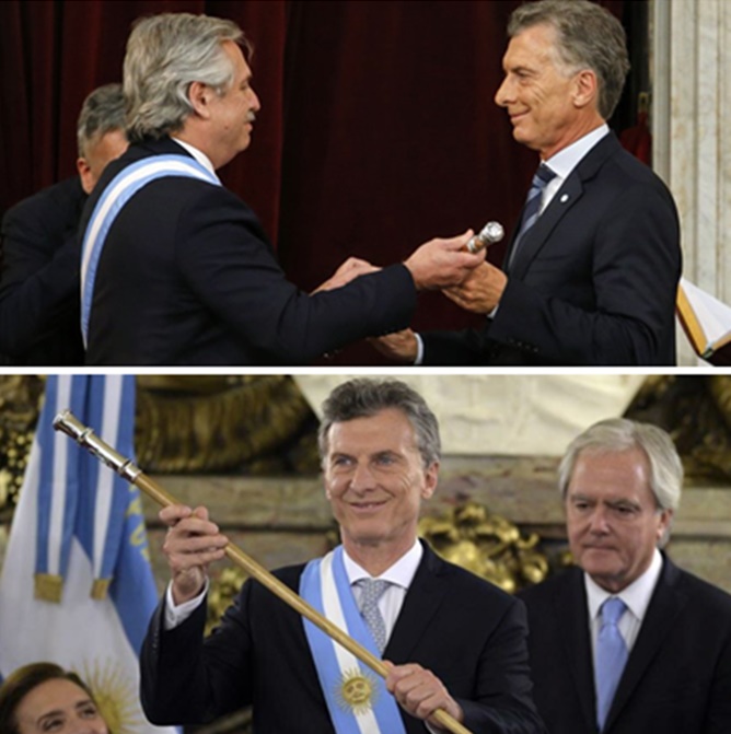 La foto del traspaso de mando, con la entrega de los atributos presidenciales, volvió a retratarse luego de 12 años, ya que Mauricio Macri le entregó el mando a Alberto Fernández ante la Asamblea Legislativa, algo que no había pasado en su asunción en 2015.