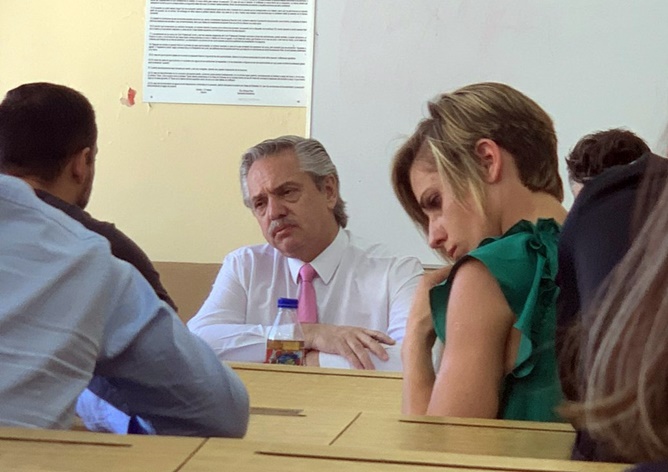 El presidente Alberto Fernández fue a la Facultad de Derecho de la Universidad de Buenos Aires (UBA) a fin de participar de la mesa de examen que evaluará a un grupo de alumnos de la cátedra que dicta.