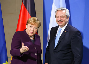 El presidente Alberto Fernández y la canciller alemana, Angela Merkel, brindaron una declaración conjunta de prensa previa al encuentro que mantienen esta tarde en Berlín, en la que el mandatario elogió el “modelo alemán” por ser “el motor de la gran unidad en la Unión Europea”.