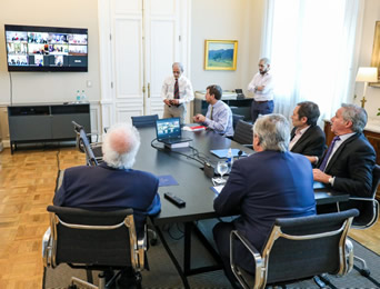 El presidente Alberto Fernández mantuvo este mediodía desde la Casa Rosada una comunicación por videoconferencia con sus pares de la región para analizar la evolución de la situación y coordinar acciones ante el incremento de la circulación del coronavirus COVID-19.