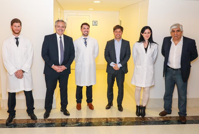 El Presidente visitó el sanatorio del Sindicato de Camioneros junto a Kicillof. Frente al sindicalista, embistió de nuevo contra "los empresarios que especulan" en medio de la pandemia