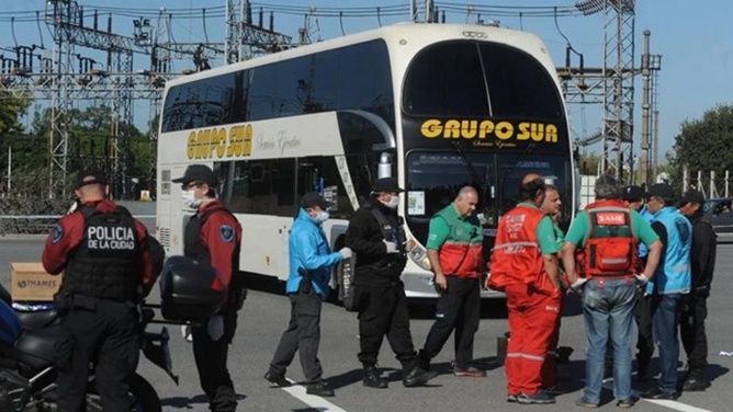 El ómnibus fue detenido sobre la autopista Perito Moreno, a la altura del peaje de Parque Avellaneda, durante uno de los controles diarios realizados por la policía para asegurar el cumplimiento del aislamiento preventivo, social y obligatorio dispuesto por el Gobierno nacional.