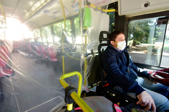 ⁃ Se mantiene el refuerzo de la limpieza y desinfección de las unidades del transporte público de pasajeros automotor y ferroviario y se recuerda a los usuarios que deben respetar el uso de tapabocas y el distanciamiento social.