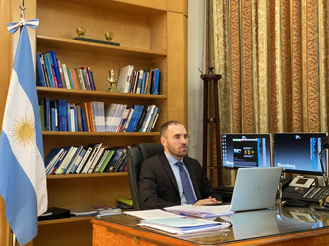 Tras explicar el enfoque adoptado por el Gobierno para enfrentar el COVID-19, Guzmán se refirió al proceso de reestructuración de la deuda que lleva adelante el país en el actual contexto de la pandemia.