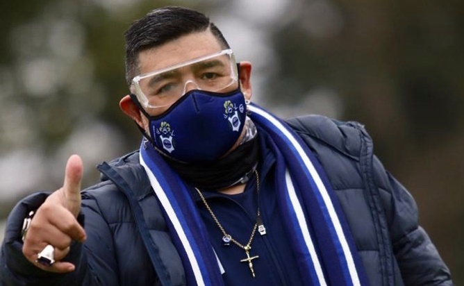 Pero este martes la historia fue distinta. Con barbijo del Lobo, unas gafas protectoras y bien abrigado, Maradona decidió presenciar el entrenamiento del plantel, que hasta ahora venía trabajando bajo las órdenes de Sebastián Méndez, el ayudante de campo del Diego.