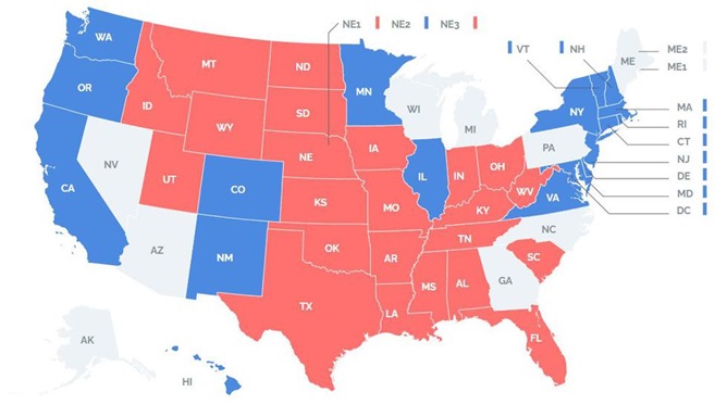 Sin embargo, desde el lado de los republicanos aún esperan poder dar vuelta esta tendencia mínima y tambien sumar Pensilvanía que otorga 20 elecgtores, y donde gana por 6 puntos y Georgia (16) y donde avnza hacía una virtual victoria con un poco más de aire.