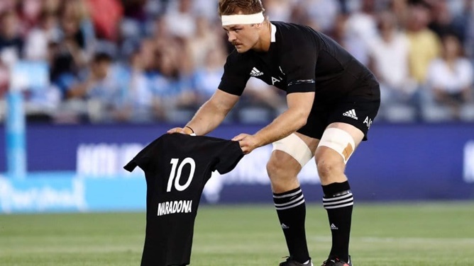 Hicieron su tradicional "haka", la tradicional danza maorí con que arrancan cada partido, pero esta vez ante una camiseta negra que tenía el número 10 y el nombre de Maradona, el astro argentino fallecido el pasado miércoles.