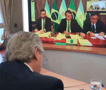 El presidente argentino mantuvo una videoconferencia desde la residencia de Olivos junto a su par de Brasil, Jair Bolsonaro, en el marco de la ceremonia por la celebración del Día de la Amistad Argentino-Brasileña, al conmemorarse el encuentro, hace 35 años, entre los exmandatarios Raúl Alfonsín y José Sarney en Foz de Iguazú.