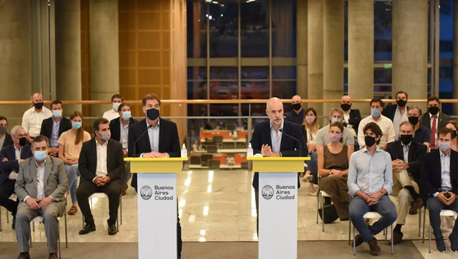 Rodríguez Larreta se mostró acompañado por las principales espadas de Juntos por el Cambio, incluyendo a la UCR, ya que Martín Loustau y Mario Negri dijeron estuvieron en el anuncio.