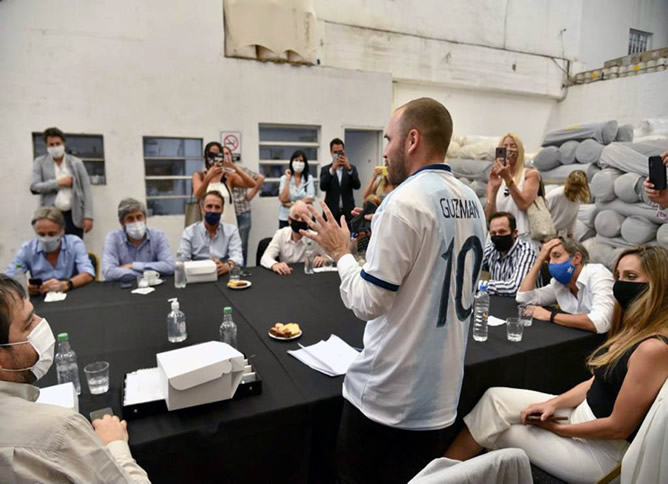 En el marco de esa visita, empresarios pymes le regalaron a Guzmán una camiseta de la Selección argentina con su apellido estampado en la espalda y un número 10.