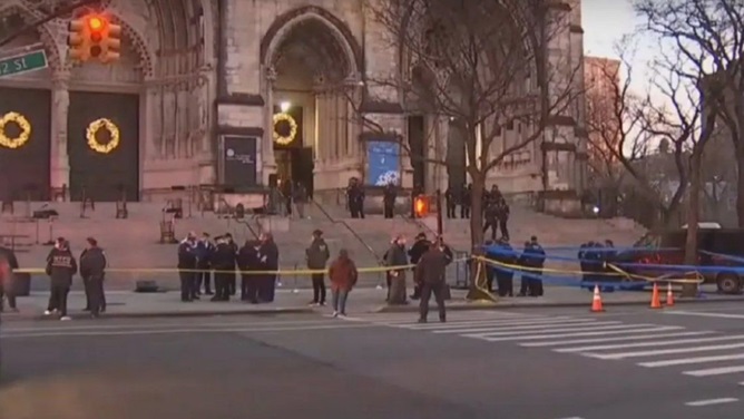 Ocurrió en la presentación de un coro en las escalinatas de la Catedral Iglesia de San Juan el Divino en Nueva York. El atacante fue detenido y uno de los heridos está grave