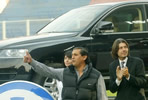 El Pelado, junto al presidente del Ciclón Rafael Savino y Marcelo Tinelli, posó con los jugadores al lado de la flamante camioneta 4 x 4 Volkswagen Touareg, ubicada en un pedestal como si se tratara de los premios que se otorgan en la final de la Copa Libertadores y el Mundial de clubes.