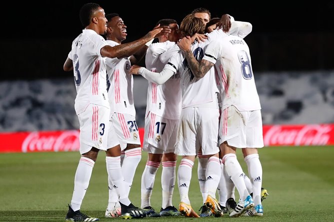 Karim Benzema y Toni Kroos, con ayuda, convirtieron para los blancos; Óscar Mingueza descontó para los catalanes. Real llegó a la punta