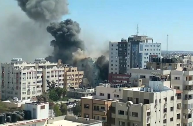 En una escalada bélica de alto impacto, que incluyó el lanzamiento de cohetes por parte de Hamas hacia Tel Aviv, Israel destruyó un edificio de 12 pisos en Gaza, en el que funcionaban las redacciones de medios de prensa internacionales como la agencia estadounidense AP, la francesa AFP y la cadena de noticias Al Jazeera.