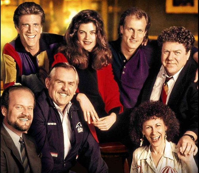 Cheers, que narraba la historia de un grupos de personas que se reunian una vez por semana en un bar de Boston donde su dueño era un ex jugador de beisbol interpretado por Ted Danson. Los otros protagonistas fueron Kirsty Allen, Woody Harrelson, Shelley Long y Kesley Grammer, quien luego siguió con su personaje Frasier en otra exitosa serie. Cheers se alzó con la cifra récord también de 25 premios Emmy sobre 117 candidaturas