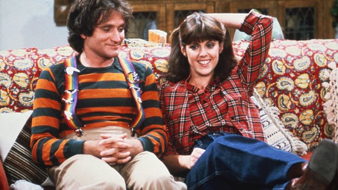 Mork and Mindy”, la comedia sobre el extraterrestre llegado del planeta “Ork” que consagró a Robin Williams. Su compañera fue la actriz Pam Dawber. La seie se inició el 14/9/78 y el capítulo final se llamó “El reporte de Mork”, donde trataba de convencer a su superior Orson, sobre las ventajas de permanecer casado en la Tierra con Mindy