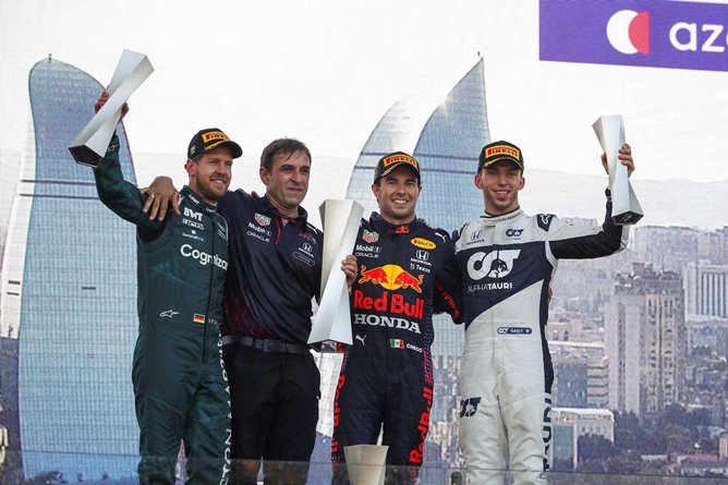 El podio de la caótica carrera sobre el circuito callejero de Bakú lo completaron el alemán Sebastian Vettel (Aston Martin) y el francés Pierre Gasly (AlphaTauri).