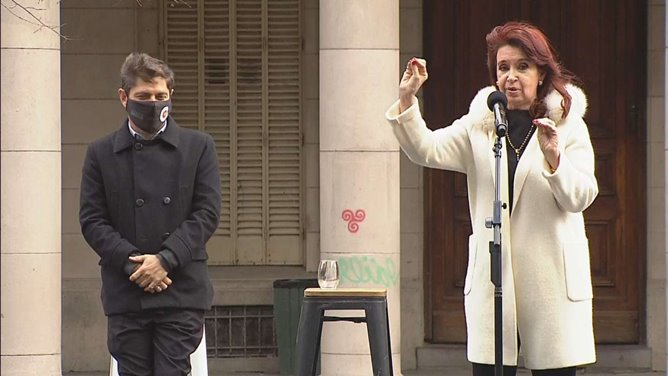 Acompañada por el gobernador Axel Kicillof, la vicepreesidenta reclamó que "en nombre de los trabajadores de la salud, de la gente que por temor no se vacunó y hoy ya no está, les pido por favor que dejemos a la vacuna y la pandemia fuera de la disputa política y contribuyamos a que no haya tantos contagios".