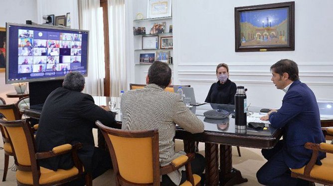 Participaron de la videoconferencia las y los intendentes: Mariano Cascallares (Almirante Brown), Alejo Chornobroff (Avellaneda), Emilio Cordonnier (Ayacucho), Esteban Andrés Reino (Balcarce), Julio César Marini (Benito Juárez), Juan José Mussi (Berazategui), Sebastián Abella (Campana), Walter Sergio Torchio (Carlos Casares), Ricardo Miguel Casi (Colón), Lisandro Matzkin (Coronel Pringles), Luis María Camilo Etchevarren (Dolores), Mario Carlos Secco (Ensenada), Alejandro Granados (Ezeiza).