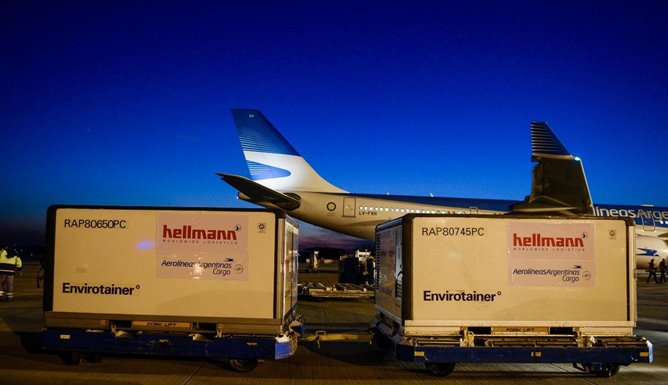 El vuelo 1071 de Aerolíneas Argentinas proveniente de Beijing trajo el primer cargamento de aplicaciones, en el marco del operativo que se inició el pasado viernes con la partida del Airbus -200.