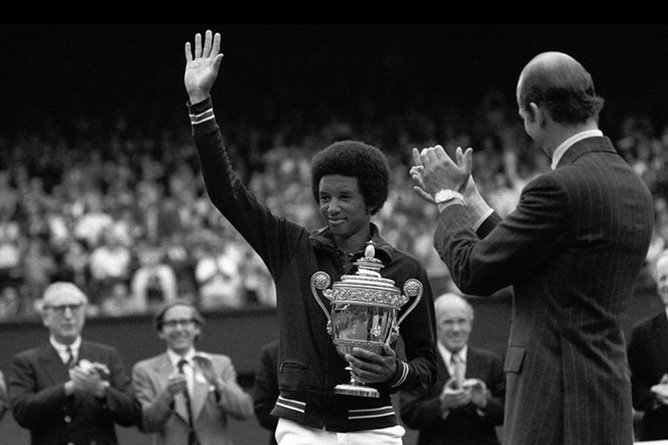 Deportes: 1975 (46 años) El norteamericano Arthur Ashe se convirtió en el primer jugador negro en ganar Wimbledon. Ya había obtenido dos títulos de Grand Slam, el US Open de 1968 y el Abierto de Australia de 1970, pero su victoria ante Jimmy Connors en el All England marcó un hito. A la fecha es el único jugador de color en ganar tres títulos de Grand Slam. Después de él, solamente hubo un caso: Yannick Noah en Roland Garros 83. Fue un simbolo para su raza. También fue capitan del equipo de Copa Davis de EE.UU y el cour central del estadio donde se disputa cada año el Abierto de ese país lleva su nombre. Ashe falleció víctima de HIV en 1993, a los 49 años.