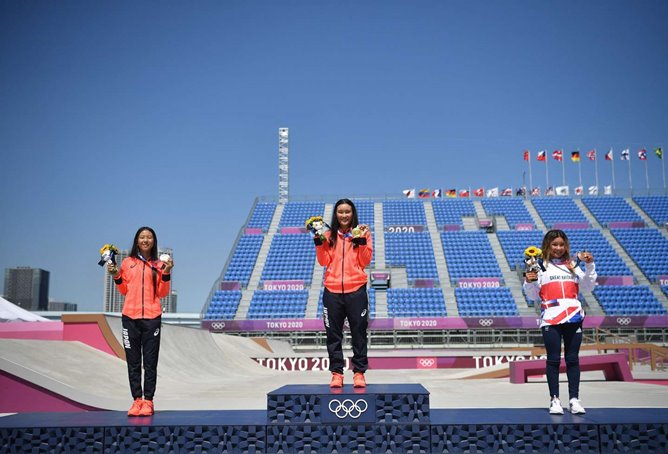 Su compatriota Kokona Hiraki, de 12 años, se llevó la plata, mientras que la británica de ascendencia nipona Sky Brown, de 13 años, fue bronce y se convirtió en la más joven medallista olímpica de su país.