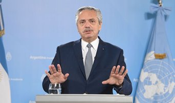 El presidente Alberto Fernández participó esta tarde de la 76° Asamblea General de las Naciones Unidas, de forma virtual, con un mensaje grabado en el que abordó desde el tema de la deuda argentina, la pandemia de covid-19, el ataque terrorista a la AMIA y el conflicto de Malvinas.