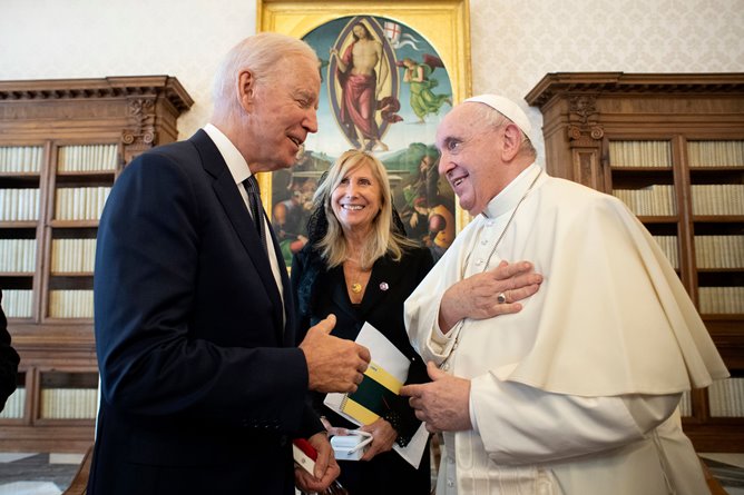 La Casa Blanca detalló en un comunicado los temas conversados en la reunión: “En su audiencia de hoy con el Papa Francisco, el Presidente Biden agradeció a Su Santidad su defensa de los pobres del mundo y de quienes sufren hambre, conflictos y persecución. Alabó el liderazgo del Papa Francisco en la lucha contra la crisis climática, así como su defensa de que la pandemia termine para todos mediante el reparto de vacunas y una recuperación económica mundial equitativa”.