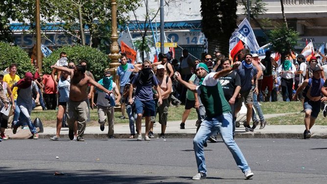 Dos manifestantes acusados de agredir con piedras y palos a la Policía y atacar al Congreso Nacional durante la discusión en diciembre de 2017 del proyecto de reforma previsional fueron condenados hoy por la justicia.