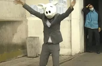 Entre las curiosidades que ofrecen todos los actos eleccionarios, se destacó en la mañana de este domingo un hombre que se acercó a emitir su voto con una gran cabeza de chancho blanca cubriendo la suya.