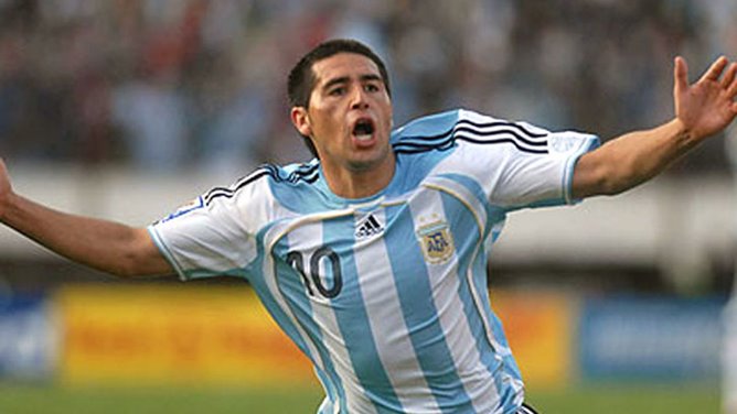 Fútbol: 1997 (24 años)En el cierre de las Eliminatorias para el Mundial de Francia '98, se enfrentaron las selecciones de Argentina y Colombia. Promediando el segundo tiempo, el técnico nacional Daniel Passarella hizo debutar con la camiseta albiceleste a Juan Román Riquelme entonces, un joven talento que asomaba en Boca. El encuentro, disputado en La Bombonera, finalizó 1 a 1. "El Pibe" Valderrama adelantó a los cafeteros e igualó Fernando Cáceres, de cabeza. Román jugó 51 partidos con celeste y blanca y marcó 17 goles hasta 2008 cuando renunció tras pelearse con el DT Diego Maradona