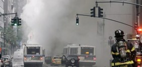 El sistema de calefacción urbana de Nueva York dispone de una vieja red subterránea de conductos que a menudo se rompen, provocando explosiones y escapes de vapor más o menos violentos.