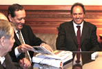 La reunión se realizó en el Salón Gris del Senado, y con la UIPBA Scioli estuvo acompañado por el presidente provisional de la Cámara Alta, José Pampuro.