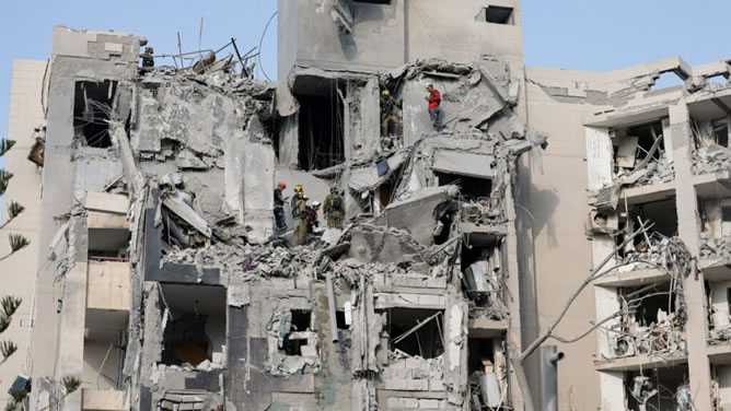 Según Noticias Argentinas, los servicios de emergencia Magen David Adom informaron que ccuatro personas murieron y al menos ocho resultaron heridasuando uno de los proyectiles destruyó un edificio residencial y dañó varias manzanas. La población fue evacuada a refugios antiaéreos y el ejército instó a permanecer cerca de zonas seguras.
