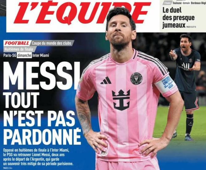 “Frente al Inter de Miami en los octavos de final, el PSG volverá a encontrarse con Lionel Messi, dos años después de la marcha del argentino, que guarda recuerdos muy contradictorios de su paso por París”, dice el diario.