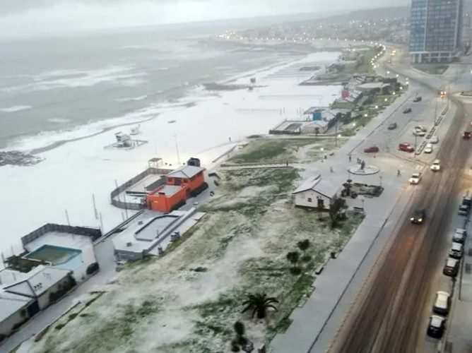 La tarde del domingo ya había dado señales de que podía pasar. Los vecinos de Miramar aseguraban que caían precipitaciones similares a copos de nieve y filmaron videos para registrar el momento. Pero durante la noche todo cambió.