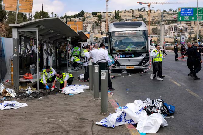 Dos atacantes palestinos abrieron fuego en una parada de colectivos durante la hora pico de la mañana en Jerusalén el lunes, donde mataron a seis personas e hirieron a otras 21, seis de las cuales están en grave estado, informaron funcionarios israelíes.