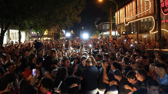 El Presidente llegó este lunes por la noche a la ciudad balnearia, donde encabezó una actividad en pleno centro para agradecer el apoyo ciudadano