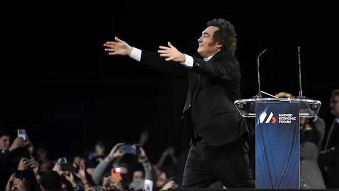 El presidente de Argentina, Javier Milei, participó este sábado del Madrid Economic Forum, un encuentro privado de perfil ultraliberal que reunió a economistas, emprendedores, traders y especialistas en criptomonedas.