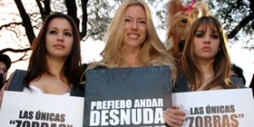 Finalmente, y sin multitudes a su alrededor, Nicole llegó hasta la Plaza Serrano, en el barrio de Palermo, y materializó su protesta junto a activistas ecologistas, vistiendo un doble cartel con la frase: "Prefiero estar desnuda, antes que vestirme con pieles".