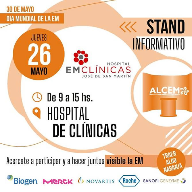 Con motivo del Día Mundial de la Esclerosis Múltiple, la división organizará en conjunto con ALCEM un stand informativo en el hall central del hospital, que se llevará a cabo el 26 de mayo de 9 a 15 hs con el objetivo de concientizar y brindar información detallada sobre la enfermedad.